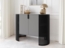 Die Kommode Fahugin in Schwarz und Hellgrau bietet mit ihren großzügigen Abmessungen von 120 x 90 x 40 cm viel Stauraum und fügt sich elegant in Ihr Zuhause ein. Hergestellt aus einer 18 mm Laminatplatte mit ABS-Rand und einem stabilen Stahlgestell, überzeugt sie durch Langlebigkeit und modernes Design. Die gedämpften Scharniere sorgen für ein sanftes Schließen der Türen.