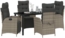 Dieses verstellbare Garten-Dining-Set von vidaXL kombiniert modernen Stil mit Funktionalität und ist ideal für Gärten und Terrassen. Hergestellt aus wetterbeständigem Poly-Rattan und pulverbeschichtetem Stahl, bietet es eine langlebige und stilvolle Lösung für entspannte Sommerabende. Die verstellbaren Stühle mit abnehmbaren Kissen sorgen für zusätzlichen Komfort und einfache Pflege.