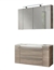 Das Fackelmann LUXOR Badmöbel Set ist ein stilvolles 7-teiliges Ensemble in Braun, das mit einer Breite von 120 cm überzeugt. Es umfasst einen LED-Spiegelschrank mit 80 cm Breite, zwei verspiegelte Hängeschränke und praktische Unterschränke. Das Gussmarmorwaschbecken mit Ablageflächen bietet nicht nur Funktionalität, sondern auch ein modernes Design. Die Kombination aus hochwertigen Materialien und durchdachten Details sorgt für eine ansprechende und langlebige Badezimmerausstattung.