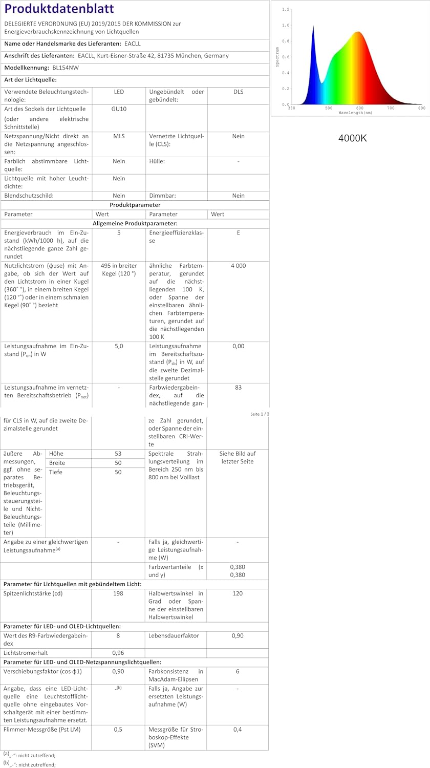 Die EACLL GU10 LED Neutralweiß 5W Leuchtmittel im 6er-Pack ersetzen herkömmliche 65W Halogenlampen und bieten mit 495 Lumen und 4000K ein helles, flimmerfreies Licht. Mit einem Abstrahlwinkel von 120° und einer Lebensdauer von über 30.000 Stunden sind diese nicht dimmbaren Reflektorlampen ideal für die Innenbeleuchtung. Sie sind einfach zu installieren und zeichnen sich durch ihre hohe Energieeffizienz aus.