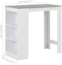 Der vidaXL Bartisch mit Regal in Weiß ist die ideale Lösung für kleine Wohnungen oder begrenzte Platzverhältnisse. Mit einem modernen Design fügt sich dieser Stehtisch perfekt in Ihre Küche oder Ihren Essbereich ein. Das 3-stufige Lagerregal bietet praktischen Stauraum für Weinflaschen und andere Gegenstände. Hergestellt aus Holzwerkstoff, ist der Tisch langlebig, stabil und leicht zu reinigen. Die starken Beine und der Seitenständer sorgen für optimale Stabilität und Komfort.