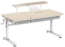 Das stabile Gestell mit einer Breite von 116,4 cm und einer Belastbarkeit von 100 kg garantiert Langlebigkeit und Stabilität. Abgerundete Kanten und ein integrierter Fingerschutz bieten Sicherheit beim Neigen der Tischplatte. Zusätzlich sorgen Haken für Schultaschen sowie ein höhenverstellbarer Aufsatz für maximalen Komfort.