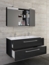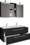 VCM Badmöbel Waschtisch Budasi in Schwarz bietet eine stilvolle und funktionale Lösung für Ihr Badezimmer. Das Set umfasst einen Unterschrank mit zwei Schubladen, ein modernes Doppelwaschbecken aus robuster Keramik und einen Spiegelschrank mit zwei Türen. Die hochwertigen Materialien und durchdachten Maße sorgen für eine optimale Nutzung des verfügbaren Raums.