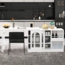 Moderner ausziehbarer Bartisch mit 360° drehbarer Seitenplatte und Stauraum. Der Tisch verwandelt sich im Handumdrehen in einen geräumigen Esstisch und bietet Platz für mehrere Personen. Mit einer durchdachten Aufteilung, die eine versteckte Tür und höhenverstellbare Einlegeböden umfasst, ist er ideal für kleine Räume. Offene Ablagen sorgen für Ordnung und schnellen Zugriff auf Ihre Küchenaccessoires.
