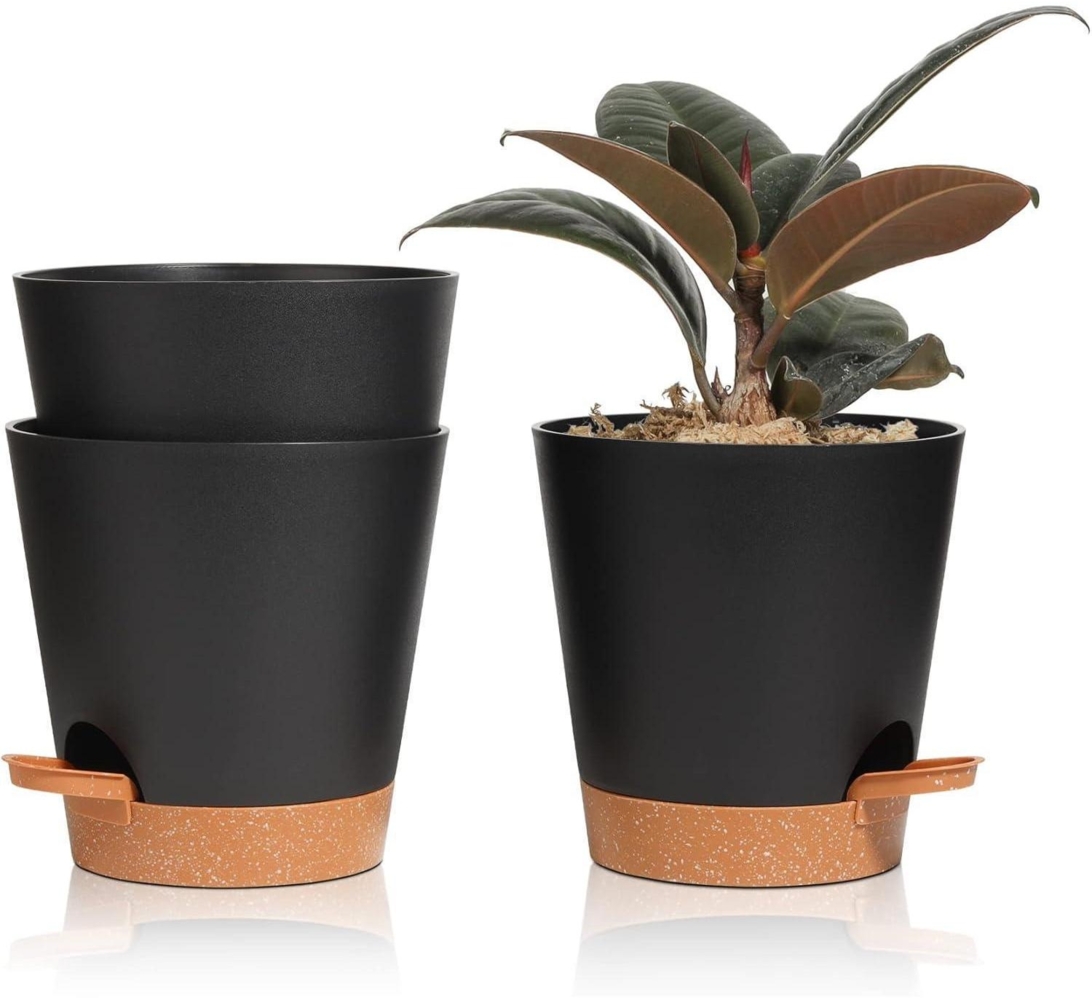 - 3 T4U Blumentöpfe mit Selbstbewässerung in Schwarz