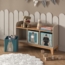 - Drei offene Fächer für Spielzeugaufbewahrung