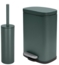 Praktisches 2-teiliges Badaccessoires-Set AKIRA von spirella, bestehend aus einem Kosmetikeimer mit 5 l Volumen und einer WC-Garnitur. Der Treteimer verfügt über eine SoftClose Absenkautomatik, während die WC-Garnitur mit einem hygienischen Innenbehälter und Deckel ausgestattet ist. Das Set in dunkelgrün besticht durch ein klassisch-elegantes Design und eine spezielle Anti-Fingerabdruckbeschichtung, die für zusätzliche Sauberkeit sorgt.