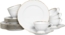 Das CreaTable Geschirr-Set 24318 ist ein elegantes 18-teiliges Kaffeeservice, das aus 6 Desserttellern (Ø 21 cm), 6 Obertassen (20 cl) und 6 Untertassen (Ø 16 cm) besteht. Hergestellt aus hochwertigem Porzellan in Europa, vereint es moderne Formen mit klassischen Elementen und besticht durch einen strahlend weißen Scherben mit handgemaltem Goldrand. Ideal für festliche Anlässe sowie den täglichen Gebrauch, bietet es außergewöhnliche Langlebigkeit und Markenqualität.