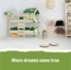 Nach vielen Runden Fangenspielen im Efeuwald und einem köstlichen Picknick am Ufer, bricht schließlich der Abend herein. Nacheinander zupfen die Waldabenteurer ihre Kissen aus dem Multi-Loop und schlüpfen in ihre Betten. Einer klettert über die Leiter ganz nach oben ins Baumhaus, während der Rest sich unten in die Kissen kuschelt. Heimlich, still und leise lässt eine Schlafmütze seinen Freunden noch schnell eine Gute-Nacht-Nachricht über den Flaschenzug hinab. Leise rascheln die Blätter und das Säuseln des Windes wiegt die Abenteurer sanft in den Schlaf.
