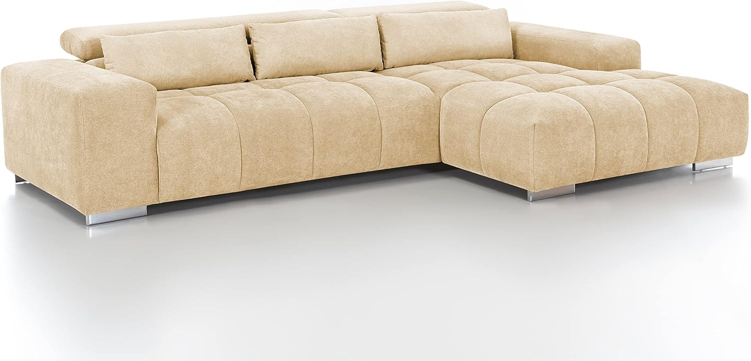 Das Mivano Ecksofa Orion vereint modernes Design mit hohem Komfort. Die großzügige L-Form und die XL-Recamiere bieten ausreichend Platz für entspannte Stunden im Wohnzimmer. Mit zwei verstellbaren Kopfstützen und Nierenkissen sorgt das Sofa für ein angenehmes Sitzgefühl. Der pflegeleichte Mikrofaserstoff in Beige und die formstabile Schaumpolsterung garantieren Langlebigkeit und einfache Reinigung.