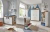 Viel Stauraum und ein modernes Design - all dies vereint die Serie 'Selina' von arthur berndt in sich. Hier fühlen sich kleine und große Familienmitglieder von Anfang an wohl. Die Kombination aus schlichtem Weiß und der warmen und gemütlichen Platinum-Oak-Nachbildung, schafft eine gefühlvolle Wohlfühlatmosphäre. Doch nicht nur die Optik weiß zu überzeugen, sondern auch die praktischen Aspekte. Das Babybett ist ein Highlight an Komfort: Die vielen Möglichkeiten, wie die Höhenverstellung der Babyliegefläche, die abnehmbaren Schlupfsprossen, die mögliche Stauraumerweiterung durch den optional bestellbaren Bettschubkasten, sowie die Möglichkeit, durch die geteilten Kopf-/ und Fußteile das Bett zu einem formschönen Juniorbett umzubauen, machen dieses Babybett zu einem wahren Kindertraum im perfekten Babyzimmer. Liegefläche: 70x140 cm Inklusive 4-fach höhenverstellbarem Lattenrost Kopf-/Fußteil geteilt Gitterseiten mit Flachstäben Ein Seitengitter mit 3 Schlupfsprossen (ermöglicht dem Baby das problemlose Herauskrabbeln aus dem Bett) Erweiterbar zum Juniorbett durch die optional bestellbaren Umbauseiten Maximale Belastung: 25 kg Pflegeleichte Melaminoberfläche (kann einfach mit einem feuchten Tuch gereinigt werden) Haptische Dekoroberfläche Material: Holzwerkstoff bzw. Massivholz (Gitterseiten und Lattenrost), melaminbeschichtet Farbe Korpus: Weiß / Platinum-Oak-Nachbildung Farbe Seitengitter / Lattenrost: Weiß Gefertigt nach DIN EN 716-1 Abmessungen (B/H/T): 143/84/76 cm Hinweis Maßangaben: Alle Angaben sind ca.-Maße Lieferumfang und Montage: Selbstmontage mit Aufbauanleitung Inkl. Montagematerial (Beschlagbeutel) Anzahl der Packstücke: 2 Matratze / Dekoration nicht im Lieferumfang enthalten