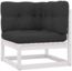4-Sitzer Gartensofa aus weißem Kiefernholz mit Kissen. Das Sofa besteht aus 2 Eckteilen, 2 Mittelteilen, 4 Sitzkissen und 6 Rücken-/Seitenkissen. Die Maße des Sofas betragen ca. 70 cm (Breite) x 67 cm (Höhe) x 70 cm (Tiefe). Die Sitzkissen haben eine Größe von ca. 58 cm (Breite) x 10 cm (Höhe) x 58 cm (Tiefe) und die Rückenkissen messen ca. 50 cm (Breite) x 12 cm (Höhe) x 40 cm (Tiefe). Das Sofa wiegt ca. 52 kg und besteht aus Kiefernholz und Polyester. Es ist neu und originalverpackt.