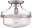 Die Deckenleuchte Penn Station vereint modernes Design mit robuster Bauweise. Sie verfügt über eine klare Glaskuppel, die an einer stabilen Halterung aus gebürstetem Nickel hängt. Mit einer Höhe von 26,7 cm und einer Breite sowie Länge von jeweils 33 cm ist sie ideal für verschiedene Wohnräume. Die Leuchte benötigt eine E27-Fassung und hat eine maximale Wattleistung von 60 W.