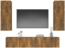 Dieses 4-tlg. TV-Schrank-Set in Räuchereiche vereint klassisches Design mit praktischen Funktionen. Hergestellt aus robustem Holzwerkstoff, bietet es eine glatte Oberfläche, die Festigkeit, Stabilität und Feuchtigkeitsbeständigkeit gewährleistet. Mit viel Stauraum für Zeitschriften und DVDs ist es ideal für Ihr Wohnzimmer. Die platzsparende Wandmontage sorgt dafür, dass keine Bodenfläche benötigt wird.