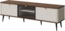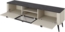 TV-Lowboard Rotevio 2K1W RE12 in der eleganten Farbgebung Cashmere / Cashmere + Nuss. Mit einer Breite von 160 cm, einer Höhe von 52 cm und einer Tiefe von 40 cm bietet es ausreichend Platz für Ihre Unterhaltungselektronik. Die Kombination aus Laminat- und MDF-Platten sorgt für Stabilität, während die gehärteten Glasfronten in einem Aluminiumrahmen einen modernen Look verleihen.