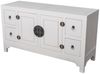 Die Dekoria Kommode Modern white ist ein stilvolles Möbelstück, das mit ihren Abmessungen von 137 x 45 x 76 cm viel Stauraum bietet. Sie verfügt über vier Schubladen und zwei Fächer, die vielseitige Aufbewahrungsmöglichkeiten schaffen. Hergestellt aus Kautschukholz im kolonialen Stil, überzeugt sie durch einen dekorativen Schrankriegel und Türklopfer. Ihre massive und stabile Konstruktion macht sie zu einem Must-have für jeden modernen Raum.