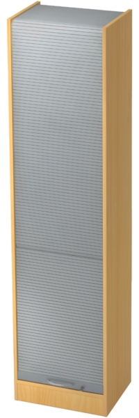 bümö Rollladenschrank in Buche/Silber mit Bogengriff - Vertikal Jalousieschrank 50 cm breit, Aktenschrank abschließbar, Büroschrank für Ordner & Co, SET50-6-S-BM