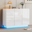 Das OKWISH LED-Sideboard vereint modernes Design mit Funktionalität. Die Hochglanzfronten in Weiß und die stimmungsvolle LED-Beleuchtung mit 16 Farben und vier dynamischen Modi schaffen eine elegante Atmosphäre. Verstellbare Einlegeböden bieten flexible Aufbewahrungsmöglichkeiten, während die hochwertige Spanplatte und das Anti-Kipp-System für Stabilität und Sicherheit sorgen. Mit einer Tragkraft von bis zu 60 kg ist dieses Sideboard ideal für Wohn-, Ess- oder Schlafzimmer.