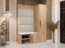Garderoben-Set Mapreni II in der Farbvariante Artisan Eiche und Manila 02 bietet eine stilvolle und funktionale Lösung für Ihren Eingangsbereich. Das Set umfasst einen Drehtürenschrank, einen Schuhschrank, ein Kleiderhakenbrett und gepolsterte Wandpaneele. Alle Möbelstücke sind aus 16 mm dicker Spanplatte gefertigt und bieten ausreichend Stauraum für Kleidung und Schuhe.