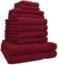 Hochwertiges 10-teiliges Handtuch-Set von Betz aus 100% Baumwolle. Die Serie CLASSIC umfasst zwei Duschtücher (70x140 cm), vier Handtücher (50x100 cm), zwei Gästetücher (30x50 cm) und zwei Seiftücher (30x30 cm). Mit einer Qualität von 470 g/m² bietet dieses Set flauschige Weichheit und hohe Saugkraft. Die eingewebten Bordüren verleihen den Handtüchern eine elegante Note und sorgen für ein angenehmes Wohlfühl-Ambiente.