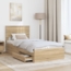 vidaXL Bettrahmen mit Kopfteil Sonoma-Eiche 90x200 cm aus Holzwerkstoff vereint modernes Design mit praktischer Funktionalität. Dieses stilvolle Aufbewahrungsbettgestell bietet nicht nur eine ansprechende Optik, sondern auch integrierte Stauraumschubladen, die für Ordnung im Schlafzimmer sorgen. Mit einem bequemen Kopfteil und einfacher Pflege ist es die ideale Wahl für alle, die Wert auf Stil und Praktikabilität legen.