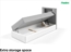 Unten: Bettkasten mit Federmechanismus und Textilgriffe, Holzrahmen mit Möbelplatte, HDF und Schaumstoff
