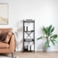 Dieses Bücherregal in schwarzer Eiche verbindet industrielles Design mit praktischem Stauraum. Hergestellt aus hochwertigem Holzwerkstoff und ausgestattet mit stabilen Stahlelementen, bietet es viel Platz für Bücher und Dekoration. Mit seinen Abmessungen von 40 x 30 x 118 cm passt es perfekt in jedes moderne Zuhause, sei es im Wohnzimmer oder im Arbeitszimmer. Das offene Design und die verstellbaren Füße sorgen für Flexibilität und Stabilität.