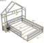 Das Kinderbett in Form eines Hauses bietet Ihrem Kind ein sicheres und spaßiges Schlafumfeld. Mit einem stabilen Geländer von 32 cm Höhe und einem praktischen Nachttisch ist es ideal für ein aufgeräumtes Schlafzimmer. Hergestellt aus hochwertigem Kiefernholz und MDF, überzeugt das Bett durch Langlebigkeit und ein ansprechendes Design. Die Maße betragen 194,5 x 195 x 190 cm, und es hat eine Belastbarkeit von bis zu 150 kg.