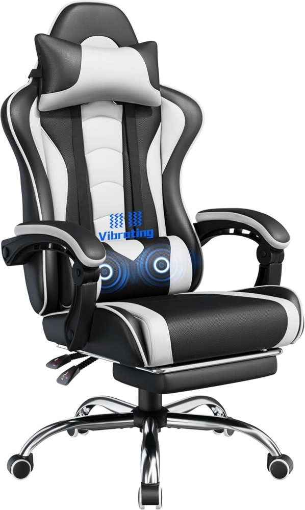 Yaheetech Gaming Stuhl Ergonomischer Gamer Stuhl mit Massagefunktion Computerstuhl mit Fußstütze Bürostuhl 90-135° Rückenlehne verstellbar Gaming Sessel PC Stuhl Weiß