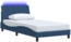 Das vidaXL Bettgestell "Hanko" in Blau bietet Ihnen eine stilvolle und komfortable Schlaflösung. Mit einem stabilen Rahmen aus Stoff und Sperrholzlatten sorgt es für eine optimale Gewichtsverteilung und Stabilität. Das Kopfteilkissen aus PP-Fasern bietet hervorragenden Komfort, während die integrierte LED-Beleuchtung eine angenehme Atmosphäre schafft.