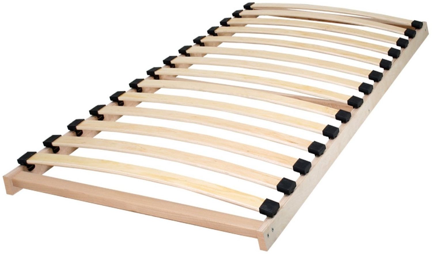 Mit 14 Federholzleisten aus Birken-/Buchenholz ausgestattet, ist der Lattenrost 'Alfa' von Inter eine zuverlässige Unterstützung für Matratzen in der Größe von 90x200 cm. Der Lattenrost ist nicht verstellbar und bis zu 60 kg tragfähig. Die bogenförmigen Holzleisten ist mit Kappen aus Plastik ausgestattet. Der Abstand zwischen den verschiedenen Kappen liegt bei 85 mm.