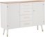 Praktisches und modernes Sideboard in Weiß und Braun mit den Maßen 117 x 37 x 90 cm. Ausgestattet mit 4 Schubladen (35 x 28 x 15 cm) und 2 Türen (38 x 34 x 67 cm) bietet es viel Stauraum für Geschirr, Bücher und Dekorationsgegenstände. Die elegante Holzoberfläche und die goldenen Metallgriffe verleihen Ihrem Wohnraum einen stilvollen Akzent. Ideal für Wohnzimmer, Flur oder Büro. Zwei Jahre Garantie ab Kaufdatum.