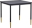 Moderner Esstisch SHALFORD in Schwarz / Gold, ideal für 4 Personen. Die quadratische Tischplatte aus formstabilem MDF ist pflegeleicht und langlebig. Das pulverbeschichtete Metallgestell sorgt für Stabilität und ausreichend Beinfreiheit. Mit seinen kompakten Abmessungen von 80x80 cm und einer Höhe von 75 cm ist dieser Tisch perfekt für Küche, Esszimmer oder Bar und wird zum stilvollen Mittelpunkt Ihrer Wohnung.