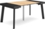 Der ausziehbare Konsolentisch von Skraut Home vereint modernes Design mit Funktionalität. Mit einer geschlossenen Größe von 90x58 cm bietet er Platz für bis zu 8 Personen, wenn er auf 160 cm verlängert wird. Die stabilen hölzernen Beine und der Teleskopmechanismus aus Aluminium sorgen für eine sichere Nutzung. Die hochwertige, poröse Holzmaserung in Schwarz und Eiche verleiht dem Tisch eine elegante Note.