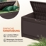 Die DEUBA Auflagenbox für Gartenauflagen & Outdoorkissen in brauner Rattanoptik ist die ideale Aufbewahrungsmöglichkeit für Ihren Garten. Mit einem Volumen von 310 Litern bietet sie ausreichend Platz für Sitzauflagen, Kissen und andere Gartenaccessoires. Die wetter- und UV-beständige Box ist leicht zu montieren und verfügt über Rollen zum einfachen Bewegen sowie drei Griffe zum leichten Öffnen des Deckels. Die Außenmaße betragen 119 x 48 x 60 cm (LxBxH) und die Innenmaße 114,5 x 45 x 55 cm (LxBxH). Der Lieferumfang umfasst eine Auflagenbox in brauner Rattanoptik.