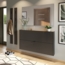 Mit dem Lomadox Garderoben-Set ABERDEEN-01 in grau mit Eiche gestalten Sie Ihren Eingangsbereich modern und freundlich. Das Set besteht aus zwei Garderobenpaneelen, einem Spiegel und einem Schuhschrank, ideal für schmale Flure. Die hochwertige Qualitätsspanplatte ist melaminbeschichtet und sorgt für eine langlebige Nutzung. Die ausklappbaren Metallhaken und die Softclose-Funktion der Klappen bieten zusätzlichen Komfort.
