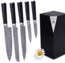 Entdecken Sie das Wakoli Magnet-Messerblock Culinary Noir 6-teilige Set, das aus 5 exquisiten Damastmessern und einem eleganten Einsteckblock besteht. Jedes Messer ist ein Unikat, gefertigt aus 67 Lagen schwarzen Damaszenerstahl, und bietet außergewöhnliche Schärfe und Haltbarkeit. Die ergonomischen Griffe aus dunklem Echtholz sorgen für eine rutschfeste Haptik und höchsten Komfort beim Kochen. Der Einsteckblock bietet nicht nur sichere Aufbewahrung, sondern auch eine stilvolle Präsentation in Ihrer Küche.