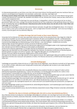 Die Bio-Matratze, die immer passt! 4 Härtegrade in 1 Matratze wählbar! schadstoffgeprüft nach strengsten ökologischen Richtlinien! hergestellt in Deutschland ausschliesslich aus reinen, zertifizierten Naturmaterialien! Für Kinder, Jugendliche und Erwachsene, 9-99 Jahre! Bezug: 100% kb A-Baumwolle, waschbar - 1 Seite weicher kb A-Doppeltuch-Bezugsstoff, 1 Seite kb A-Drellbezug. Der Reissverschluss ist teilbar. Sie entscheiden selbst, wie weich oder fest und auf welchem Bezugsstoff Sie liegen! Geeignet bis zu einem Körpergewicht von ca. 90 kg. Klimatisierende, wärmende Schurwollabdeckung.