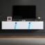 Dieser stilvolle TV-Schrank mit den Maßen 180 x 35 x 30 cm überzeugt durch sein modernes, schwebendes Design in Hochglanz Weiß und blauen Acryllinien. Die drei gedämpften Türen bieten sanften Zugang zu fünf internen Unterteilungen für eine ordentliche Aufbewahrung. Der integrierte, per App steuerbare LED-Lichtstreifen sorgt für stimmungsvolle Beleuchtung. Hergestellt aus hochdichten Spanplatten, bietet der Schrank Stabilität für Fernseher bis ca. 75 Zoll und trägt bis zu 45 kg.