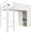 Das Hochbett ist ideal für Kinder und bietet eine Liegefläche von 90x200 cm. Es besteht aus robustem Kiefernholz und MDF in Weiß. Das Bett verfügt über einen unabhängigen Kleiderschrank, ein praktisches Staufach und einen offenen Unterbettraum, der flexibel genutzt werden kann. Die sichere Kombination aus Leiter und Geländer ermöglicht ein einfaches Ein- und Aussteigen.