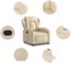 Lehnen Sie sich zurück und genießen Sie den Komfort des vidaXL Relaxsessels in Creme. Mit einer manuellen Liegefunktion, die eine maximale Neigung von 135 Grad ermöglicht, können Sie die perfekte Position für Entspannung finden. Die dick gepolsterte Sitzfläche und die breiten Armlehnen sorgen für ein gemütliches Sitzerlebnis. Praktische Getränkehalter und eine Seitentasche bieten zusätzlichen Komfort. Der stabile Rahmen aus Holz und Metall garantiert Langlebigkeit und Stabilität.