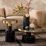 Der Couchtisch GLAM in Schwarz von Zuiver überzeugt durch sein ausgefallenes Design und die glänzende Optik. Mit einem Durchmesser von 60 cm und einer Höhe von 35 cm ist er ideal für Wohnzimmer, Esszimmer oder Flur. Die emaillierte Stahlplatte und das goldene Metallband verleihen ihm einen glamourösen Charakter. Die maximale Gewichtsbelastung beträgt 15 kg, während das Gesamtgewicht des Tisches bei 13 kg liegt.