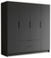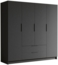 Kleiderschrank Sozor I in Schwarz bietet mit seinen großzügigen Abmessungen von 200 x 216 x 60 cm viel Stauraum für Ihre Kleidung. Hergestellt aus einer 16 mm Laminatplatte und ausgestattet mit Aluminiumgriffen, sorgt er für eine moderne Optik. Die gedämpften Scharniere und Kugelgleitschienen gewährleisten ein sanftes Schließen. Der Schrank verfügt über eine Kleiderstange und geräumige Regalfächer, die Ihnen helfen, Ordnung zu halten.