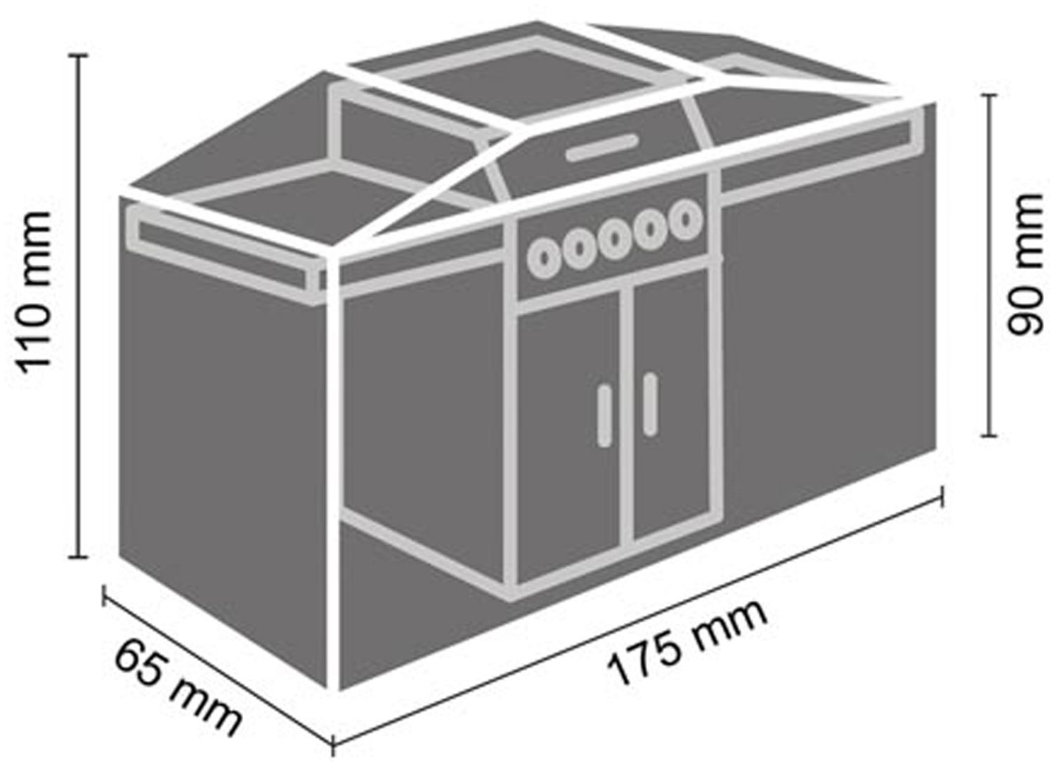 Mit dieser Hülle schützen Sie Ihren Grill vor Witterungseinflüssen und Schmutz. Mit einem Maß von 175 x 65 x 110cm eignet sich diese trapezförmige Abdeckung optimal für viele verschiedene Grill Modelle bis 175cm Breite. Die graue Abdeckplane schützt Ihren Grill nicht nur zuverlässig vor Sonneneinstrahlung, Schmutz oder Frost, sondern durch die verwendeten, hochwertigen Materialien auch vor Regen oder Schnee. Mit einer Wassersäule (Durchlässigkeit) von 10000 mm ist die Plane wasserfest, so dass Regen und Wasser erst unter äußerst widrigen Bedingungen eindringen können. Dennoch empfiehlt es sich natürlich, den Grill vor allem bei längerem Nichtgebrauch in einem geschützten Bereich aufzubewahren. Durch das strapazierfähige, farbechte Polypropylen bleibt Ihr Grill wunderbar vor Nässe und sonstigen Witterungseinflüssen geschützt. Von nun an brauchen Sie sich also keine Sorgen mehr um Ihren Grill zu machen. Auch wenn es ein durchwachsener Sommer wird oder Sie Ihren Grill im Winter draußen stehen lassen, ist er durch die wasserfeste Plane bestens geschützt. Natürlich finden Sie in dem umfangreichen Perel-Sortiment auch noch weitere Größen und Formate für Ihren Grill, Ihre Outdoor Möbel, Sonnenschirme und Polster, so dass Sie für jedes Möbelstück die ideale Größe wählen können.