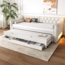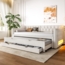 Das Merax Daybett ist ein elegantes gepolstertes Tagesbett in Beige, das mit LED-Beleuchtung und einem praktischen Ausziehbett ausgestattet ist. Mit drei Schubladen bietet es zusätzlichen Stauraum für Wäsche und Spielzeug. Die solide Konstruktion aus MDF und einer Leinenmischung sorgt für Langlebigkeit und Stabilität. Ideal für Gäste oder als stilvolles Möbelstück in jedem Raum.