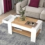 Der Vicco Couchtisch Goldkraft in Eiche/Weiß ist ein stilvolles Möbelstück für Ihr Wohnzimmer. Mit den Maßen 99,6 x 48,2 x 58,8 cm bietet er nicht nur eine moderne Optik, sondern auch praktische Funktionen. Die geräumige Schublade und das untere Regal schaffen zusätzlichen Stauraum für Ihre Lieblingsartikel. Dieser Couchtisch vereint Funktionalität und Ästhetik und wird zum Blickfang in Ihrem Zuhause.