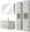 Das Saphir Badmöbel-Set Quickset 936 ist eine stilvolle und praktische Lösung für Ihr Badezimmer. Es umfasst einen hochwertigen Mineralmarmor-Waschtisch, einen LED-Spiegelschrank sowie zwei geräumige Hochschränke in Eiche Weiß quer Nachbildung. Die Möbel sind mit Türdämpfern ausgestattet, die ein leises Schließen ermöglichen. Dank der Melaminharzbeschichtung sind die Badmöbel langlebig und pflegeleicht.