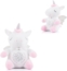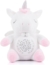 Das Chipolino Musik Plüschtier Einhorn vereint Spieluhr und Kuscheltier in einem. Mit einem C-Ring lässt es sich einfach am Kinderwagen, der Babyschale oder dem Gitterbett befestigen. Der Projektor zeigt zwei Figuren (Mond und Sterne) und fördert die visuelle sowie akustische Wahrnehmung Ihres Kindes. Es spielt bis zu 12 Melodien, darunter Schlaflieder und Naturgeräusche, und verfügt über einen Timer mit Spieldauer von 30, 60 oder 90 Minuten.