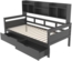 Dieses multifunktionale Sofa-Bett in Grau ist die ideale platzsparende Lösung für Kinder- und Jugendzimmer. Mit den Maßen 205 x 96 x 125 cm bietet es ein komfortables Bett mit einer Liegefläche von 90x200 cm und eine stilvolle Sofafunktion. Die robuste Metallkonstruktion mit 15 stabilen Latten hat eine Tragkraft von 150 kg. Praktische Schubladen und seitliche Staufächer sorgen für zusätzlichen Stauraum.