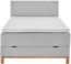 Der hellgraue Webstoff, mit dem das ca. 122 x 116 x 209 cm große Bett bezogen ist, sorgt für ein freundliches Flair im Raum. Wie auch alle anderen bei diesem Artikel verwendeten Stoffe, besteht er aus 100 % Polyester. Der Rahmen und die vier ca. 15 cm hohen Füße wurden ihrerseits aus massiver Eiche gefertigt.